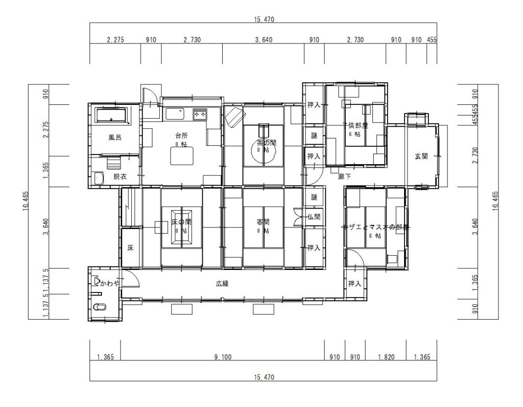 以下を除いて、ほぼ磯野家の間取り図です。