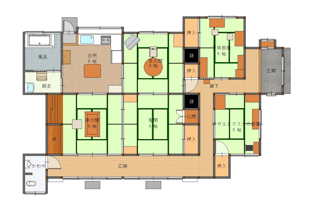 磯野家には四方向壁に囲まれた謎の空間が2箇所存在します。