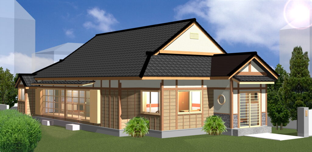 原作の間取りと姿の整合性が不明確なため、屋根形状・屋根勾配など少し変更しています。